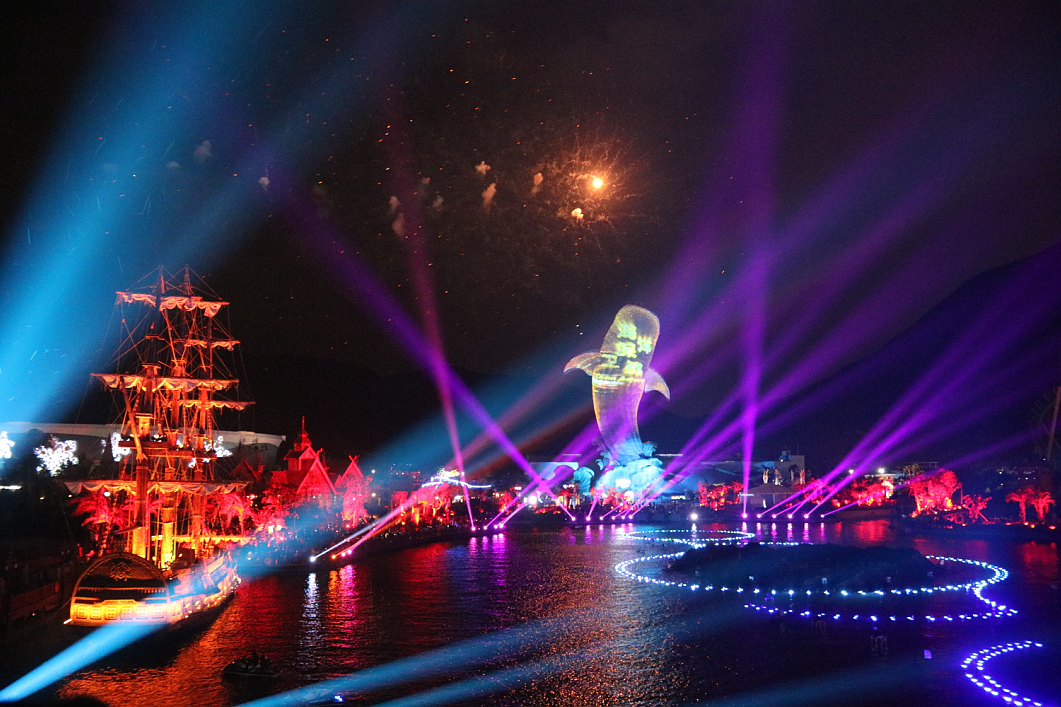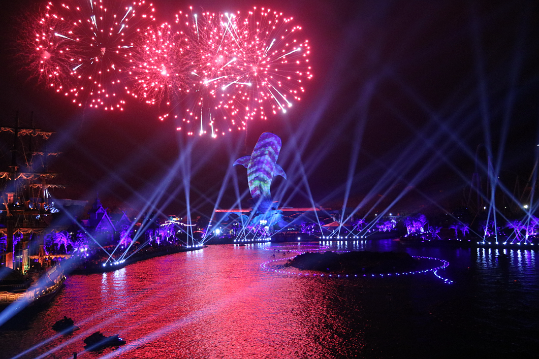 【一場(chǎng)燈光與科技的完美邂逅】浩洋燈光魅力助陣珠海長(zhǎng)隆海洋王國(guó)中心湖大型匯演《海洋保衛(wèi)戰(zhàn)》壓軸上演