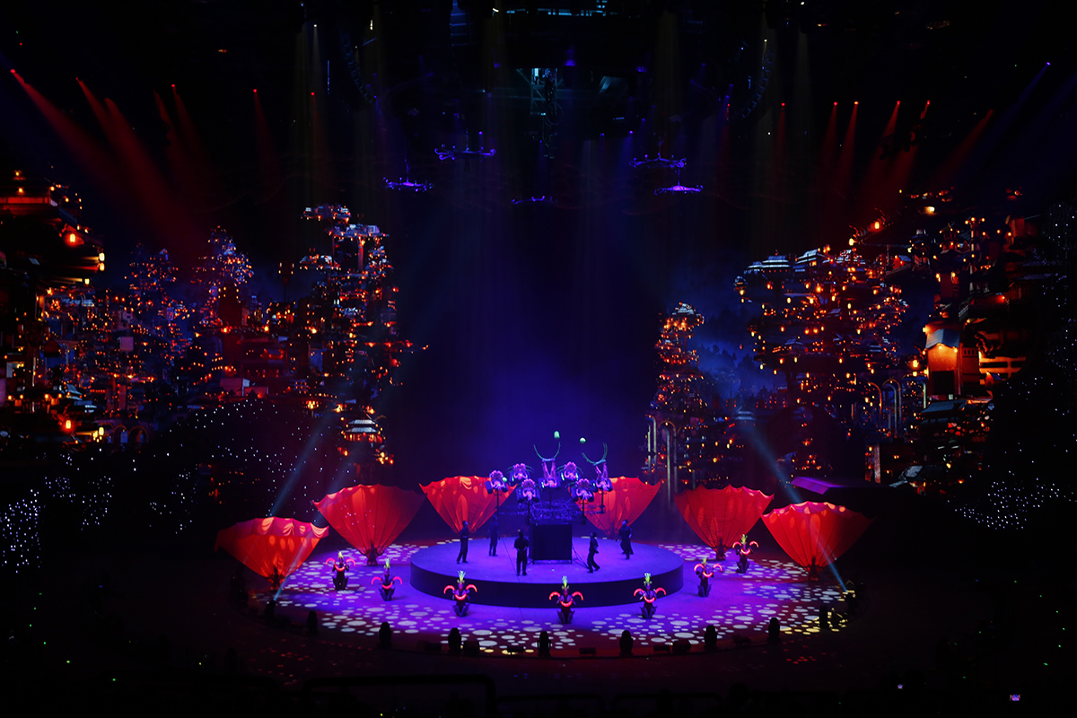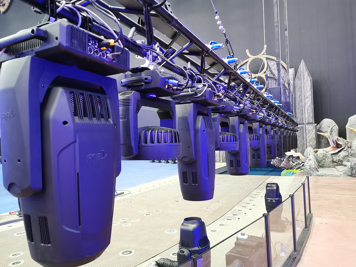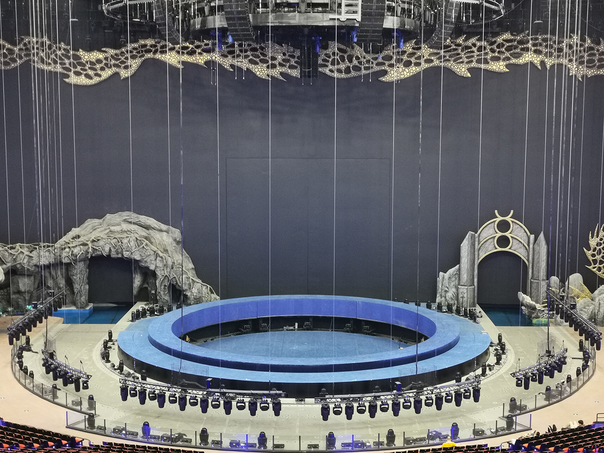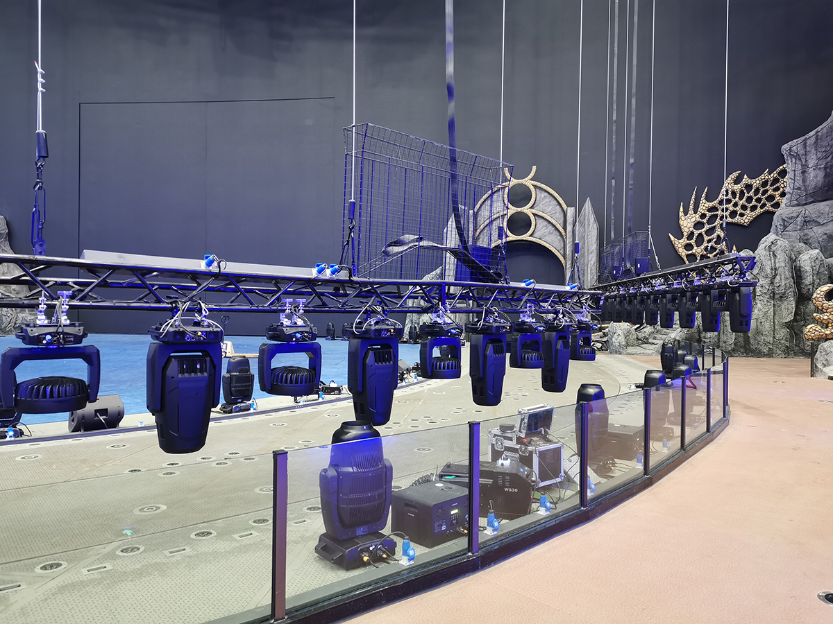 作為全新的文旅地標(biāo),長(zhǎng)隆劇院設(shè)計(jì)體現(xiàn)出智能科技的前沿性和實(shí)用性。現(xiàn)場(chǎng)使用了實(shí)現(xiàn)實(shí)時(shí)升降的智能電腦燈具,其中浩洋電子傾力支持了大部分燈具,其中建筑照明燈GSARC DOT M系列提供了180臺(tái),以科技之光點(diǎn)亮這場(chǎng)全新的大型馬戲,運(yùn)用多屏幕的全景環(huán)繞技術(shù)將極致地將舞美、燈光、音響等元素重新定義整合,使劇情氛圍更加緊湊。