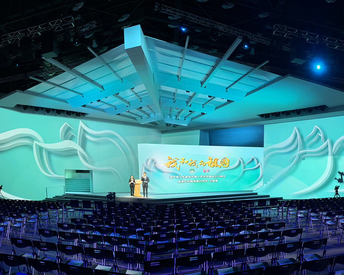 全國(guó)政協(xié)副主席何厚鏵,澳門(mén)特別行政長(zhǎng)官崔世安,中央政府駐澳門(mén)聯(lián)絡(luò)辦公室主任傅自應(yīng)等嘉賓及澳門(mén)新時(shí)代同心行參訪團(tuán)全體人員,政府和社會(huì)各界代表約3000人出席現(xiàn)場(chǎng)。主題會(huì)以視頻短片、合唱表演、嘉賓演講、青年分享等形式,展示了新時(shí)代澳門(mén)青少年對(duì)愛(ài)國(guó)主義精神的理解。會(huì)場(chǎng)氛圍熱烈,場(chǎng)面簡(jiǎn)約大氣,這場(chǎng)主題會(huì)由燈光設(shè)計(jì)師王喆等主創(chuàng)以春晚的高標(biāo)準(zhǔn)水平進(jìn)行設(shè)計(jì)編排。在主題會(huì)中,浩洋電子提供了全能王三合一電腦燈G21 HYBRID 141臺(tái)和切割燈V3000P 58臺(tái)助力會(huì)議的成功開(kāi)展,讓愛(ài)國(guó)精神點(diǎn)亮新時(shí)代前進(jìn)之路。