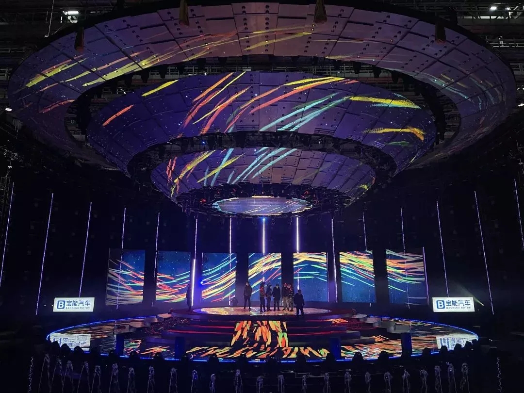 這次盛會(huì)的燈光設(shè)計(jì)圍繞“啟航·看中國(guó)”主題設(shè)計(jì)出一艘360度的太空飛船,燈光設(shè)計(jì)在此基礎(chǔ)上將太空飛船進(jìn)行了270度的視覺包裹,將主背景設(shè)計(jì)為矩陣燈墻,為舞臺(tái)整體視覺提升高度。