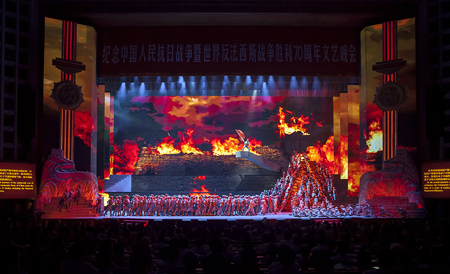 此外,于9月3日晚,在京的中央領導同志與出席抗戰(zhàn)勝利70周年紀念活動的各國元首、部分外國政要、國際組織代表,抗戰(zhàn)老戰(zhàn)士老同志的代表及首都各界代表,共計6000余人將出席以“勝利與和平”為主題的抗戰(zhàn)勝利70周年文藝晚會。浩洋電子以自主品牌特寶麗的V2000W,1500W 搖頭染色;V3000P 1500 徹割成像電腦燈;G10 Hybrid三合一全能王電腦燈;OK370Z Led 搖頭染色;PT320B 搖頭光束電腦燈為抗戰(zhàn)勝利70周年增加色彩,讓過去的歷史在浩洋的燈光海洋中展現(xiàn)出恢弘大氣、氣勢磅礴、震撼人心的史詩性藝術效果!!!
