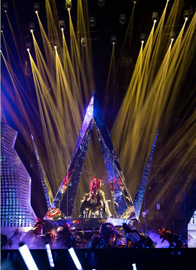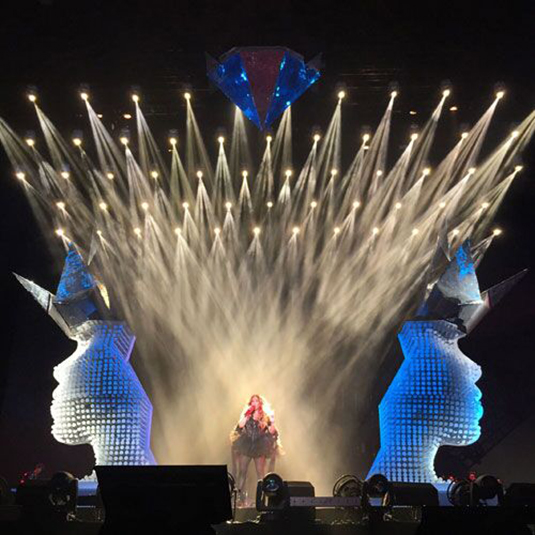 一向?qū)σ魳酚兄鴺O致要求的張惠妹團(tuán)隊,在「烏托邦世界巡城演唱會」中,更是投重金打造世界級硬件設(shè)備及舞臺道具。作為打造演唱會燈光效果的主力武器,浩洋電子轟天炮G10B憑借全球頂級的高亮度輸出特性、銳利的光束和完美的棱鏡效果,為“烏托邦”現(xiàn)場營造了時而狂野,時而歡樂的舞臺氛圍。而浩洋電子另一款小體積、長壽命的染色燈PT330W,也用柔和細(xì)膩的CMY均勻渲染效果,令現(xiàn)場似烈果繽紛、如沐幻境。在燈光師的詮釋之下,二者光束與染色交融演繹,使整個巡演舞臺呈現(xiàn)出靈動、華麗的光影視覺,讓歌迷獲得極具沖擊力的感官體驗。數(shù)十場演出下來,由浩洋燈光營造的超震撼視覺效果,無疑成為「張惠妹2015烏托邦世界巡城演唱會」的最大亮點之一。