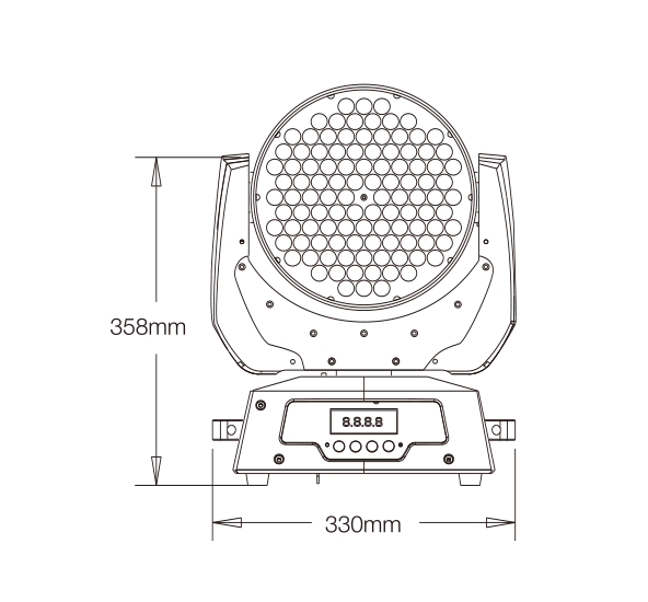 可從控臺完成更改DMX地址碼,機(jī)器重設(shè),聲控模式的轉(zhuǎn)換等功能
