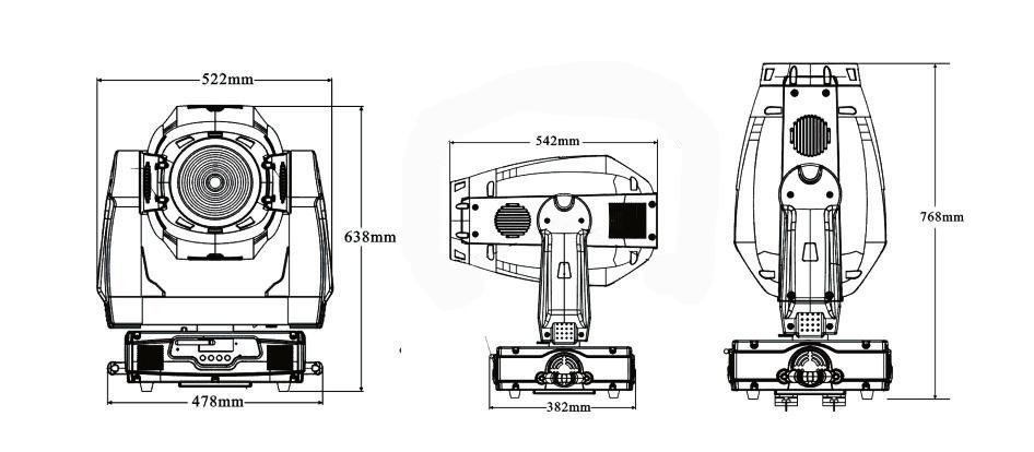 可從控臺(tái)完成更改DMX地址碼,遙控開關(guān)燈泡,機(jī)器重設(shè)等功能