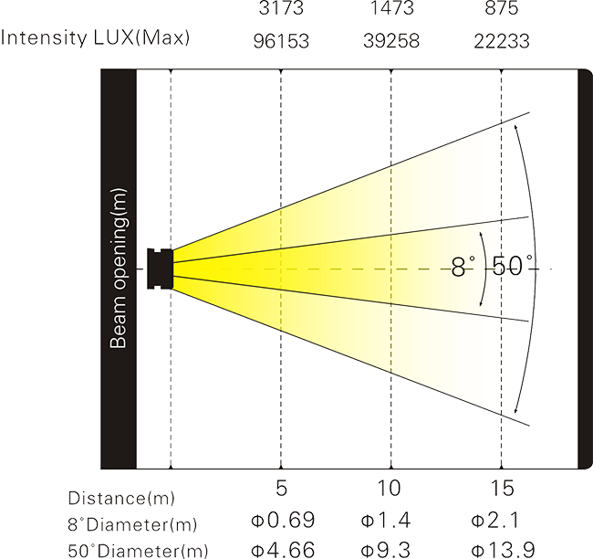 成像盤:一組由4個(gè)切角片組成可控制的光斑切角系統(tǒng),整個(gè)切角系統(tǒng)可做90°旋轉(zhuǎn),通過對(duì)切光片的精準(zhǔn)控制,可創(chuàng)造出任意方向的三角形,菱形,長方形等光斑形狀