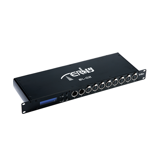 信號(hào)從A、B兩個(gè)信號(hào)端口輸入,可以轉(zhuǎn)置為由8個(gè)單獨(dú)輸出端口或4個(gè)一組的兩組輸出端口的DMX512標(biāo)準(zhǔn)信號(hào)通道,而且具備加強(qiáng)放大信號(hào)的功能。
