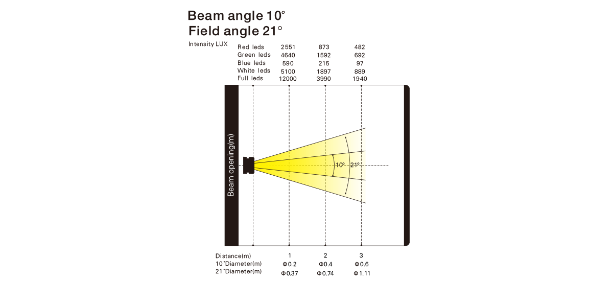 LED類型:8顆10W大功率RGBW 4合1 LED,達(dá)到均勻細(xì)膩的混色效果